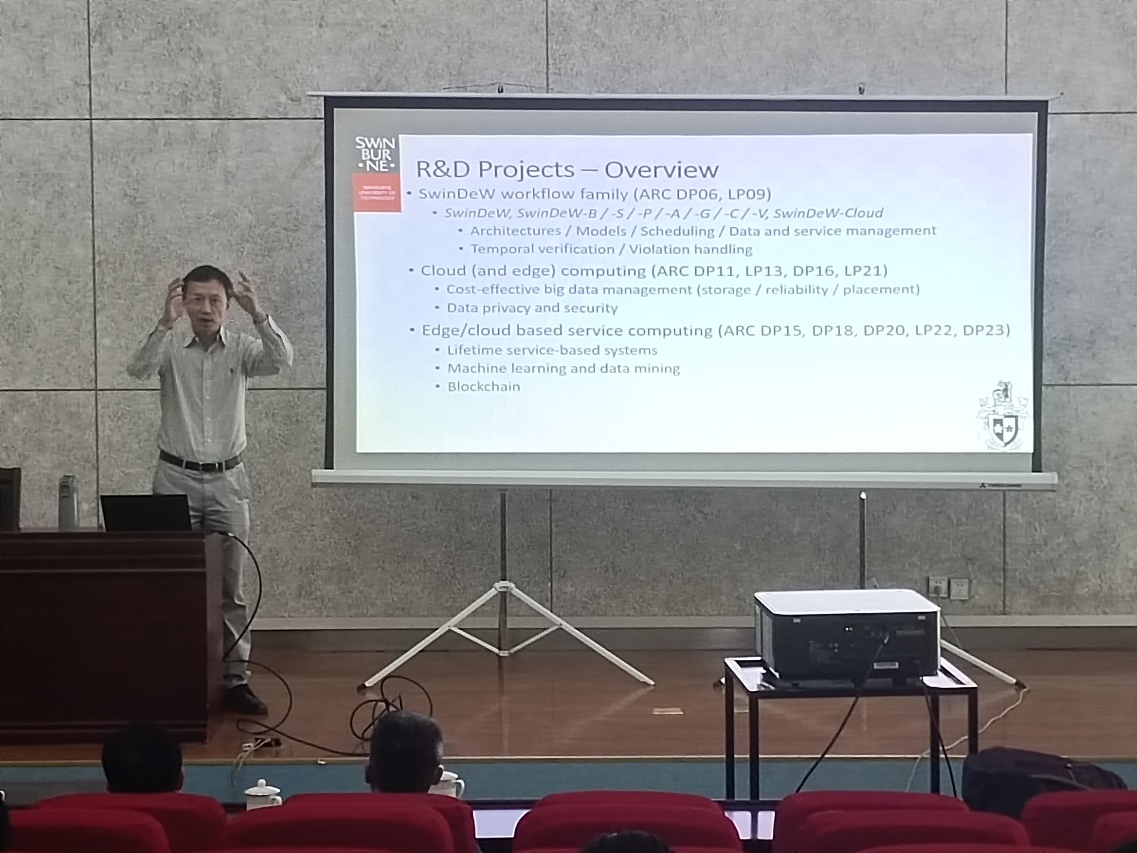 楊耘教授是澳大利亞斯威本科技大學(xué)正教授,博士生導(dǎo)師。他的主要研究領(lǐng)域包括云及邊緣計算,服務(wù)計算,大數(shù)據(jù),軟件系統(tǒng),工作流管理系統(tǒng)。現(xiàn)已有5部專著,在國際會議和雜志上共發(fā)表發(fā)表論文超過400篇。此次他的到訪和講座,無疑為合肥大學(xué)的師生們帶來了一場學(xué)術(shù)盛宴。