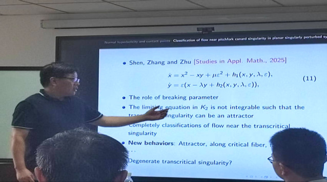 三位教授結(jié)合理論推導(dǎo)與實例分析,細(xì)致講解研究成果與方法。沈建和以豐富的案例和嚴(yán)謹(jǐn)?shù)耐茖?dǎo),系統(tǒng)闡釋接觸點分叉奇異擾動的核心問題,為學(xué)員搭建起基礎(chǔ)理論框架;