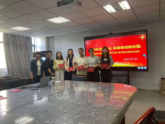 2025年7月1日,人工智能與大數(shù)據(jù)學(xué)院教工第三黨支部在36棟305舉辦了一場(chǎng)以“政治生日憶初心,砥礪奮進(jìn)新征程”為主題的主題黨日活動(dòng)?;顒?dòng)在莊嚴(yán)的國(guó)歌聲中拉開帷幕,全體黨員教師在黨支部書記邵桂偉的帶領(lǐng)下,重溫入黨誓詞。面對(duì)鮮紅的黨旗,黨員教師們高舉右拳,莊嚴(yán)宣誓:“我志愿加入中國(guó)共產(chǎn)黨……”激昂的誓言在會(huì)場(chǎng)內(nèi)回蕩,表達(dá)了黨員教師們對(duì)黨的忠誠(chéng)與熱愛,也激勵(lì)著他們?cè)诮窈蟮墓ぷ髦欣^續(xù)砥礪前行。人工智能與大數(shù)據(jù)學(xué)院黨委書記牛欣和邵桂偉為支部六月和七月入黨的黨員教師們送上精心準(zhǔn)備的“政治生日”賀卡。隨后,過“政治生日”的黨員教師們依次發(fā)言,分享自己的入黨故事和入黨初心。王麗麗老師回憶起自己入黨時(shí)的情景,激動(dòng)地說:“入黨是我人生中最重要的一次選擇,從宣誓的那一刻起,我就將自己的一生與黨的事業(yè)緊緊相連。在教育工作中,我始終牢記黨員身份,努力為學(xué)生傳道授業(yè)解惑,為黨的教育事業(yè)貢獻(xiàn)自己的力量?!痹诎l(fā)言過程中,許多黨員教師都提到,入黨不僅是一種榮譽(yù),更是一份沉甸甸的責(zé)任。他們表示,無論歲月如何變遷,自己都將堅(jiān)守入黨初心,踐行入黨誓詞,在平凡的崗位上發(fā)光發(fā)熱。