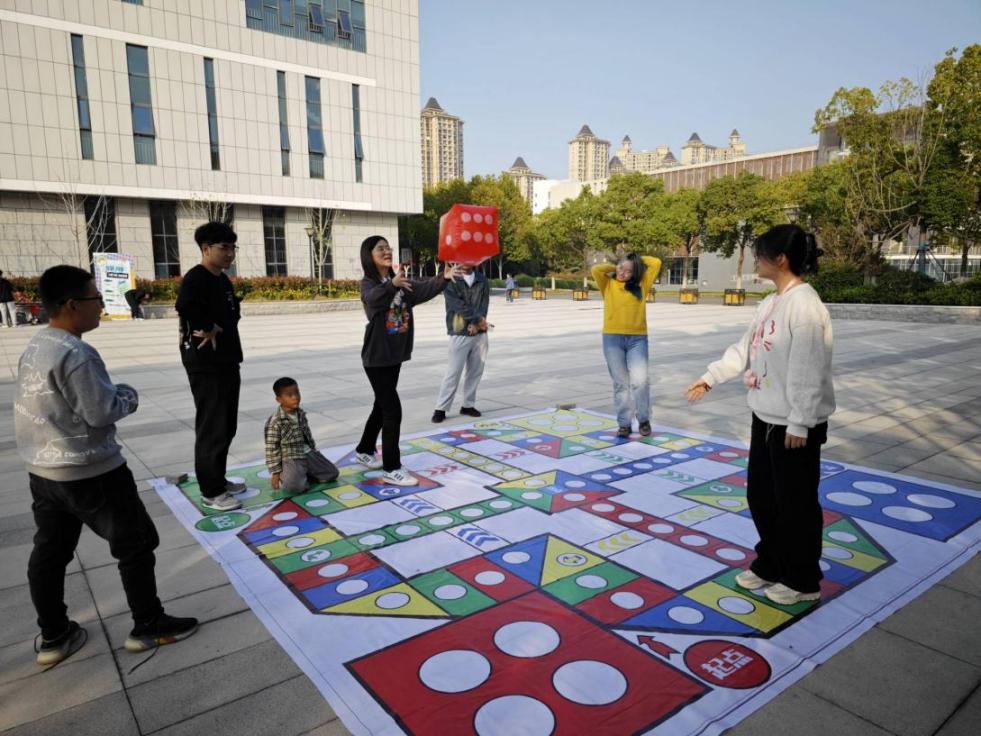 在學院的大力支持下,此次活動吸引了眾多學生的熱情參與。現(xiàn)場布置了超大的飛行棋地毯,參與者們在棋盤上爭奪第一,體驗冒險、策略與競技的樂趣,既鍛煉了參與者的個人應變能力,也增強了他們的心理韌性。