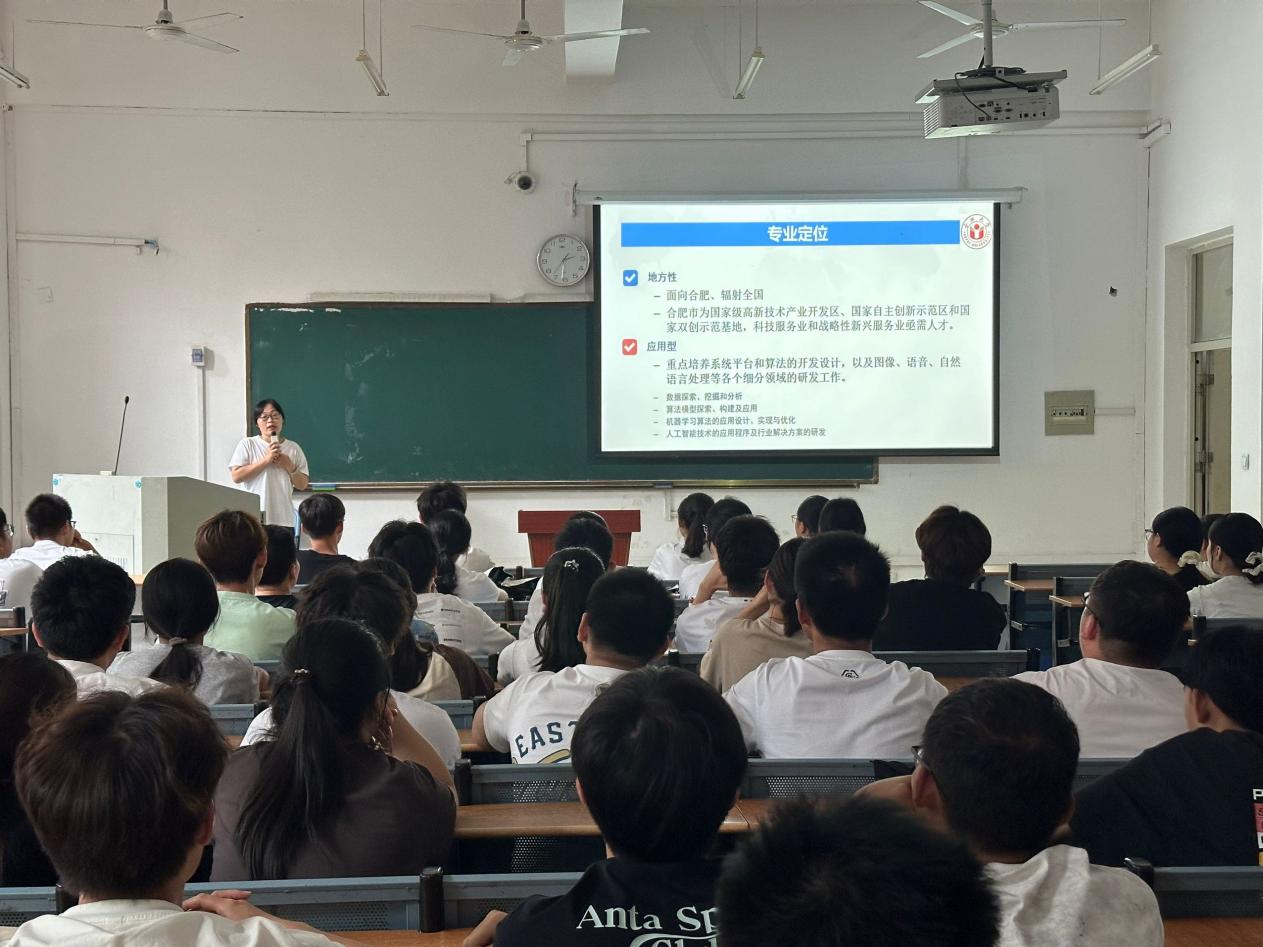 9月11日下午,智能科學(xué)與工程系系主任何立新老師為2025級(jí)計(jì)算機(jī)科學(xué)與技術(shù)專(zhuān)業(yè)新生介紹本院簡(jiǎn)介、專(zhuān)業(yè)概括及就業(yè)情況等信息,幫助新生建立專(zhuān)業(yè)認(rèn)知框架。
