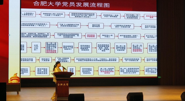 王琳老師首先向新生們介紹了中國共產(chǎn)黨的光輝歷程和偉大成就,闡述了黨的基本理論、基本路線和基本方針,引導(dǎo)新生們樹立正確的世界觀、人生觀和價(jià)值觀。接著介紹了黨員的發(fā)展、管理工作和基層黨組織的職責(zé)、構(gòu)成以及相關(guān)工作,并向新生們展示了合肥大學(xué)黨員發(fā)展流程圖,對(duì)黨員發(fā)展的五大步驟作了詳細(xì)的解釋。最后王琳老師強(qiáng)調(diào),入黨是一個(gè)追求卓越、承擔(dān)責(zé)任的過程,是對(duì)個(gè)人學(xué)習(xí)成績、行為態(tài)度、政治思想和群眾基礎(chǔ)等多方面的全面考察。她鼓勵(lì)有志青年積極向黨組織靠攏,以實(shí)際行動(dòng)踐行黨的宗旨,為實(shí)現(xiàn)中華民族偉大復(fù)興的中國夢貢獻(xiàn)青春力量。