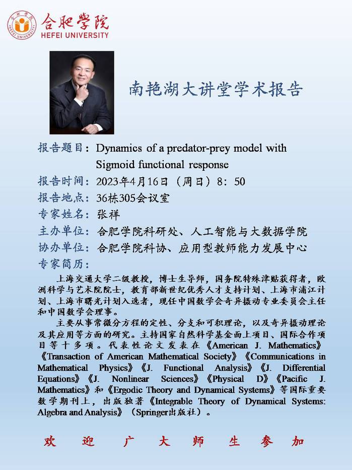 【講座預告】Dynamics of a predator-prey model with Sigmoid functional response