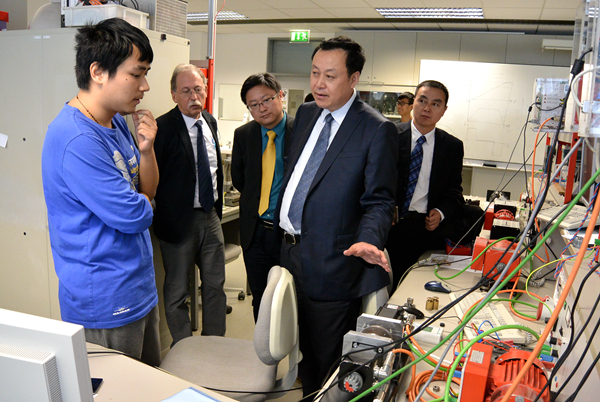 9月4日,代表團一行于奧地利訪問了里奧本礦業(yè)大學,并與該校校長艾謝爾賽德教授舉行了會談。艾謝爾賽德校長在介紹中指出,里奧本礦業(yè)大學成立歷史悠久,在奧地利工科院校中排名第一,期望與合肥學院在工程人才領域的教師及高層次人才培養(yǎng)方面開展合作。蔡敬民感謝校長的盛情接待,并重點就中國應用型工程人才培養(yǎng)的情況及我校基地建設進行了介紹,期望里奧本礦業(yè)大學通過雙方合作,在基地人才隊伍建設和科研項目方面發(fā)揮作用。雙方在會談后簽署了兩??蚣苄院献鲄f(xié)議。在該校廢棄物利用及管理研究所主任博姆貝格教授,以及該研究所前任主任、我?!皻W盟亞洲鏈”項目奧方負責人勞勃教授的引導下,代表團一行參觀了該校環(huán)境領域實驗室,并就后期具體領域內的合作事宜進行了探討。