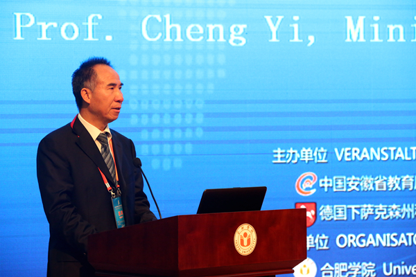 程藝指出,教育發(fā)展是一件戰(zhàn)略性的大事,需要戰(zhàn)略性謀劃,安徽省始終堅(jiān)持把教育放在優(yōu)先發(fā)展的戰(zhàn)略地位,積極深化教育綜合改革,大力推進(jìn)教育內(nèi)涵發(fā)展,在高等教育方面取得了成績(jī),在全國(guó)也產(chǎn)生了影響,被稱為“安徽現(xiàn)象”。安徽高等教育改革起步較早,確定了先進(jìn)的發(fā)展戰(zhàn)略思路,率先提出本科高校的全面轉(zhuǎn)型,建設(shè)應(yīng)用型高校的發(fā)展思路,培育了一批像合肥學(xué)院一樣在全國(guó)有一定影響的應(yīng)用型本科高校,初步建立了具有安徽特色的應(yīng)用型高等教育體系。此外,高校的發(fā)展分類有序推進(jìn),高等教育的結(jié)構(gòu)調(diào)整不斷深化,高校的科技優(yōu)勢(shì)明顯增強(qiáng),滿足了我省先進(jìn)制造業(yè),服務(wù)業(yè)領(lǐng)域?qū)θ瞬排囵B(yǎng)的需求,為推動(dòng)高??萍紕?chuàng)新、內(nèi)涵式發(fā)展打下了良好的基礎(chǔ)。任何大學(xué)都可以在自己擅長(zhǎng)的領(lǐng)域里爭(zhēng)創(chuàng)一流。如何把準(zhǔn)現(xiàn)代教育的前進(jìn)方向,把準(zhǔn)安徽發(fā)展的根本要求,使命重大。每屆研討會(huì)都圍繞著高等教育發(fā)展的前沿問題,加強(qiáng)交流與研討,取得了豐碩的成果,努力推動(dòng)中德教育的科學(xué)發(fā)展。本次研討會(huì)的召開為安徽省高等教育的發(fā)展提供了機(jī)會(huì),我們期待碰撞出更多智慧的火花,照亮安徽高等教育未來發(fā)展之路。