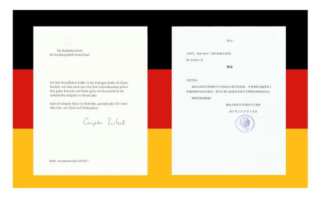 這是學校第3次收到默克爾總理親筆信。此外,學校還收到時任德國總統(tǒng)伍爾夫先生2次親筆信。