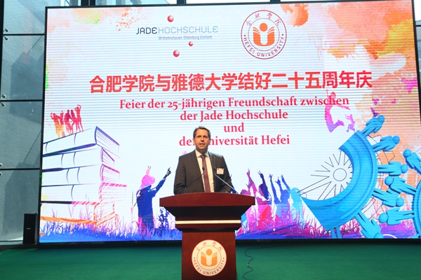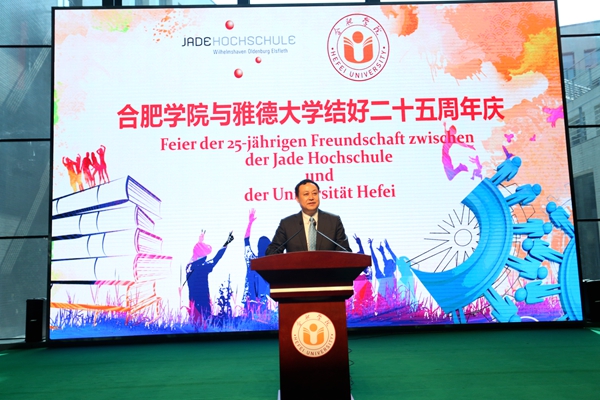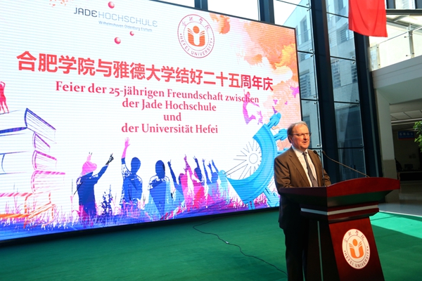 合肥學(xué)院與雅德大學(xué)結(jié)好二十五周年慶典活動(dòng)在我校圖書(shū)館大廳舉行。在觀看了視頻紀(jì)念短片后,蔡敬民與德國(guó)雅德大學(xué)代表科斯特教授分別致辭。雙方回顧了兩校合作歷程后均表示將繼續(xù)在現(xiàn)有合作基礎(chǔ)上進(jìn)一步深化友誼。賴斯部長(zhǎng)發(fā)表講話,他提到,合肥學(xué)院與雅德大學(xué)合作基礎(chǔ)雄厚、交往密切,也推動(dòng)了中德年輕人的交往互動(dòng),對(duì)雙方來(lái)說(shuō)都是一種智慧投資。慶典活動(dòng)中,兩校合作培養(yǎng)的338名學(xué)生中有部分代表也來(lái)到了現(xiàn)場(chǎng)發(fā)表感言,并向兩所母校分別贈(zèng)送了紀(jì)念品。合肥學(xué)院學(xué)生合唱團(tuán)為到場(chǎng)嘉賓進(jìn)行了表演,現(xiàn)場(chǎng)氣氛和諧活潑。慶典結(jié)束后,賴斯部長(zhǎng)及代表團(tuán)一行在校園里共同種植下象征中德友誼的常青樹(shù)。