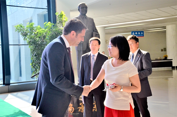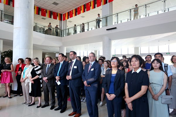 5月26日,德國(guó)下薩克森州經(jīng)濟(jì)、就業(yè)與能源部部長(zhǎng)奧拉夫·賴斯(Olaf Lies)率下薩克森州經(jīng)濟(jì)代表團(tuán)訪問(wèn)我校,為中德合作“物流4.0”實(shí)驗(yàn)室揭牌,并參加合肥學(xué)院與德國(guó)雅德大學(xué)結(jié)好二十五周年慶典。安徽省外事辦公室副主任張力芳、合肥市副市長(zhǎng)吳春梅、安徽省教育廳外事處處長(zhǎng)丁育紅應(yīng)邀出席。