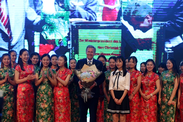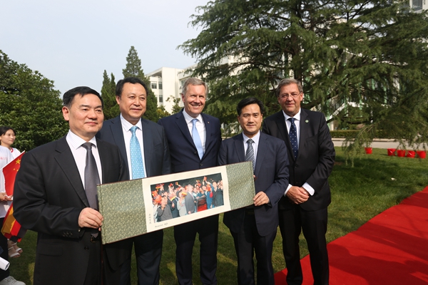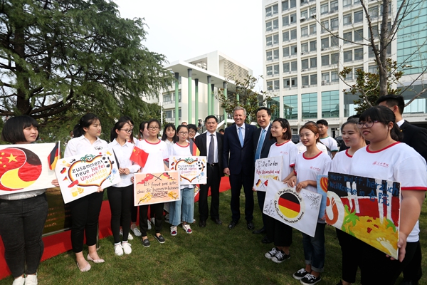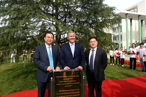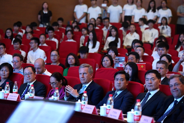 武爾夫主席在合肥學院發(fā)表主旨演講。他深情回憶起第一次訪華在學院時種下友誼樹、2008年再次訪華為友誼樹澆水的情景,這也是他種下的第一顆友誼樹。他回憶,第一次訪問學校時,年輕人態(tài)度特別的積極,特別的熱情,中國的青年想創(chuàng)造未來,對未來有非常多的期待,給他留下了非常深刻的印象。他在演講中回顧了德國下薩克森州和安徽的合作歷史,雙方在農(nóng)業(yè)、食品加工、機械制造和工業(yè)設計等領域開展的全方位合作,為中德交流打下堅實的基礎。他引用李克強總理的比喻說,中德合作要像吃螃蟹那樣,用智慧、技術和耐心把“螃蟹”吃干凈,不能吃一口就算了。因此,德國和中國的交流還有很多領域可以攜手,可以互相借鑒的地方非常之多,雙方可以在新的絲綢之路上加強交流與合作,開創(chuàng)輝煌的未來。