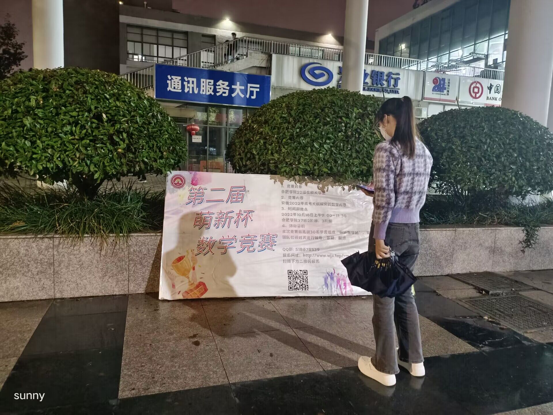 2022年10月8日,大學(xué)生數(shù)學(xué)協(xié)會于線下展開了“萌新杯”的宣傳活動。大學(xué)生數(shù)學(xué)協(xié)會的部分成員參加了此次線下活動。