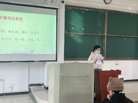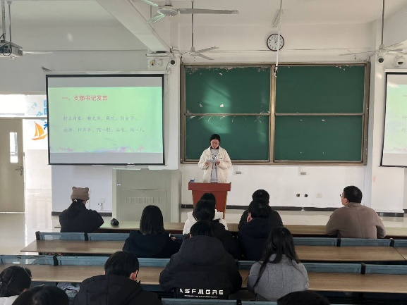 院黨委副書記蔡靈美老師講話,她向全體黨員提出明確要求,強(qiáng)調(diào)黨支部全體黨員應(yīng)時(shí)刻保持高度自律性,在廣大同學(xué)中充分彰顯黨員先進(jìn)性,積極發(fā)揮黨員先鋒模范帶頭作用,以實(shí)際行動(dòng)為黨的事業(yè)增光添彩,為同學(xué)們樹立良好榜樣。