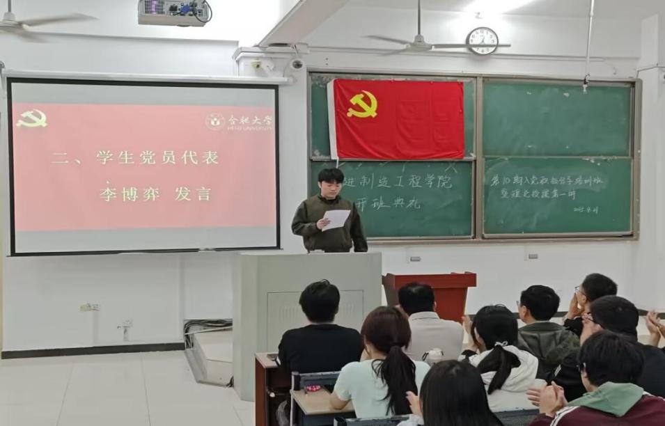 2021級機(jī)械設(shè)計制造及其自動化李博弈同學(xué)作為學(xué)生黨員代表發(fā)言。他回顧了自己的入黨初心與成長歷程,坦言黨員身份不僅是一份榮譽,更是時刻督促自己“知不足而奮進(jìn)”的精神鞭策。這份使命感促使他在學(xué)習(xí)生活中始終保持昂揚向上的精神風(fēng)貌,并投身于科技競賽榮獲一系列國家級、省級榮譽,順利考取中國科學(xué)技術(shù)大學(xué)研究生。他希望學(xué)員們以端正的態(tài)度投入黨校學(xué)習(xí),在學(xué)思踐悟中堅定理想信念、錘煉過硬本領(lǐng),勇?lián)鷷r代使命,早日成長為新時代合格的共產(chǎn)黨員。