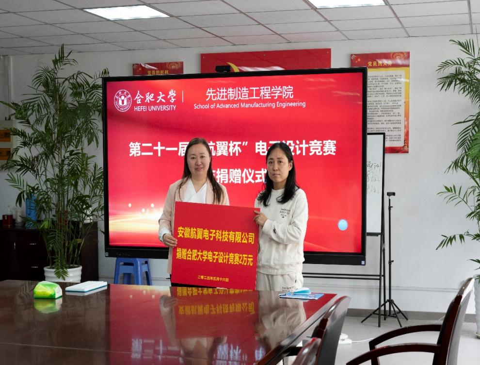 春風送暖,情誼綿長。近日,合肥大學杰出校友安徽航翼電子科技有限公司總經理張永麗、副總經理張翼向母??犊栀?/span>2萬元,專項用于支持第二十一屆“航翼杯”電子設計競賽,以實際行動回饋母校,助力學子在電子信息領域追逐科創(chuàng)夢想。