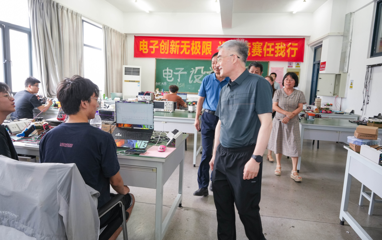 在先進制造工程學院大學生工程實踐與創(chuàng)新教育中心創(chuàng)新創(chuàng)業(yè)實訓室、智能控制實訓室,鄔平川親切看望了備賽2025年全國大學生電子設計競賽、第二十屆全國大學生智能車競賽的指導教師及學生。