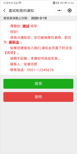 第三步、畢業(yè)生收到面試通知,并選擇是否接受面試邀請。