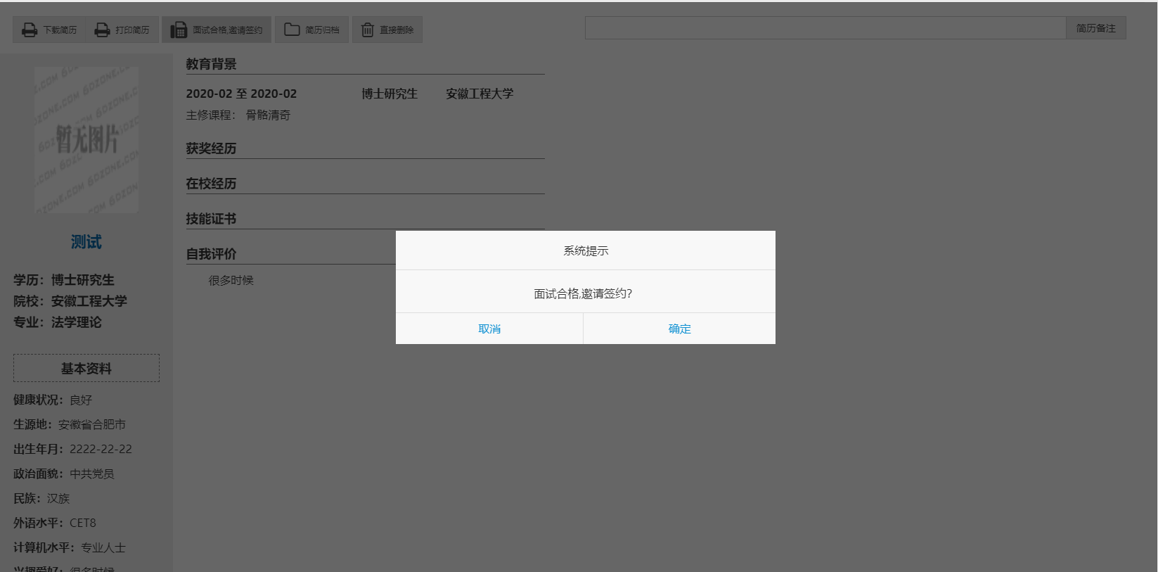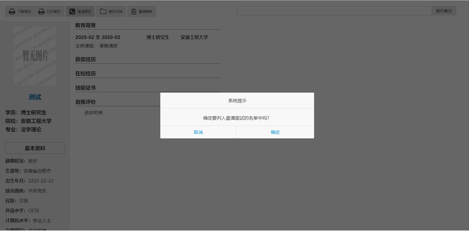 第二步、用人單位登錄校招平臺,查看簡歷,向意向畢業(yè)生發(fā)送面試邀請。
