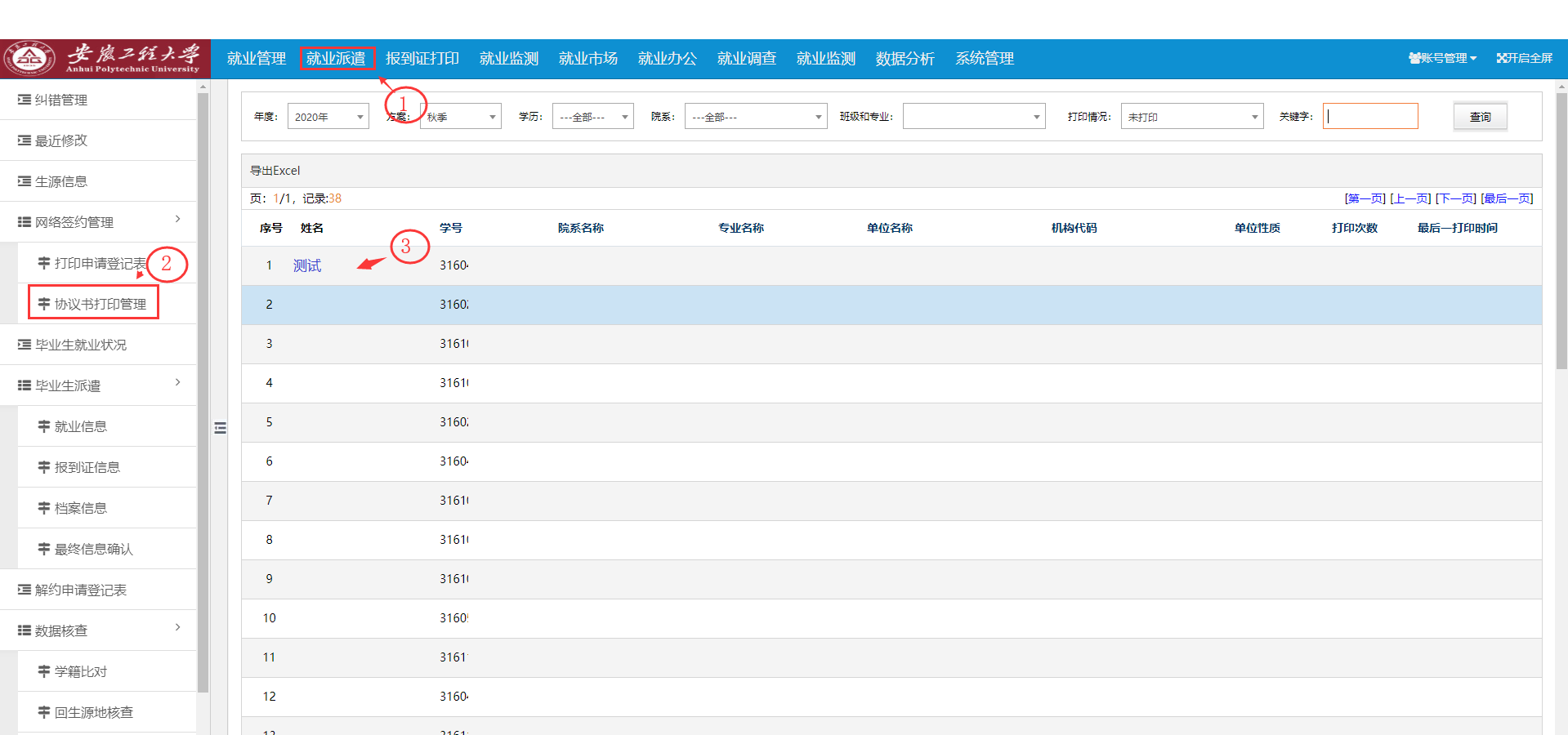 第一步、院系老師和管理員打開協(xié)議書打印管理頁面