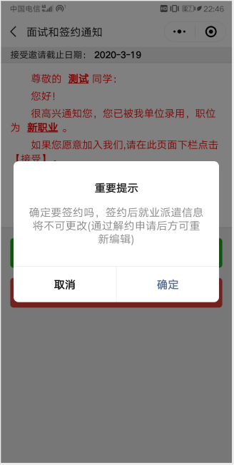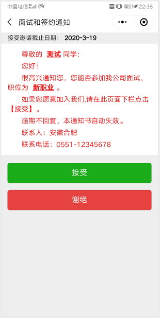 第五步、畢業(yè)生收到簽約通知,并選擇是否接受面試邀請。