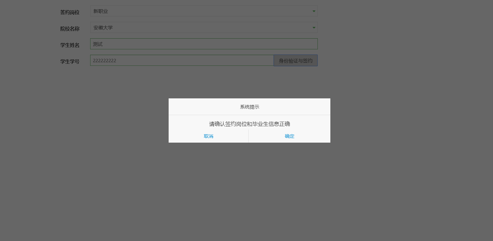 第三步、選擇簽約崗位、填寫簽約畢業(yè)生信息并確認