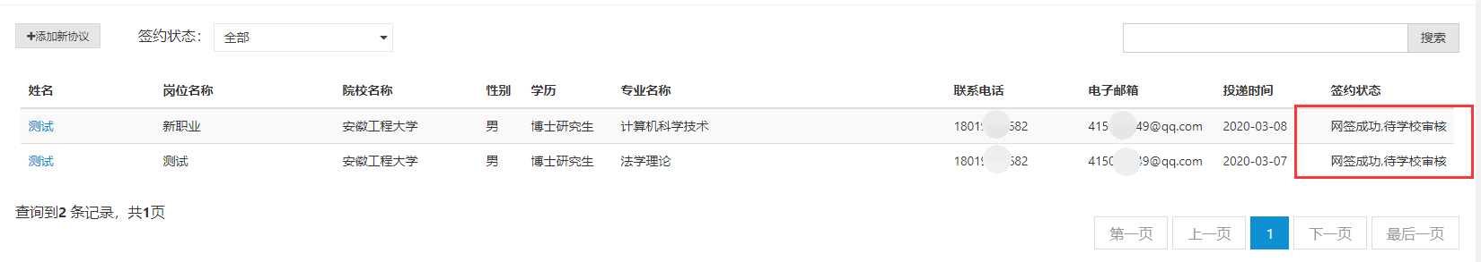 第二步、點擊畢業(yè)生姓名,查看簽約信息