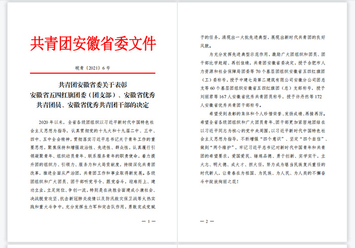 “安徽省優(yōu)秀共青團(tuán)員”是共青團(tuán)安徽省委授予全省團(tuán)員的最高榮譽(yù)。主要目的是通過表彰在各個(gè)領(lǐng)域涌現(xiàn)出的先進(jìn)典型,激勵(lì)廣大團(tuán)組織和團(tuán)員、團(tuán)干部比學(xué)趕超、再創(chuàng)佳績。我校學(xué)子2019、2020連續(xù)兩年獲評“安徽省優(yōu)秀共青團(tuán)員”,不僅是對學(xué)生個(gè)人的肯定,更是對我校團(tuán)學(xué)工作的肯定,是落實(shí)高校人才培養(yǎng)、立德樹人的根本任務(wù),弘揚(yáng)社會主義核心價(jià)值觀的體現(xiàn)。一直以來,我校全面貫徹落實(shí)黨的教育方針,將培養(yǎng)德智體美勞全面發(fā)展的社會主義建設(shè)者和接班人作為開展各項(xiàng)工作的基礎(chǔ),通過先進(jìn)典型的引領(lǐng)指導(dǎo)作用營造“爭先創(chuàng)優(yōu)”的良好氛圍,培養(yǎng)出一批又一批的優(yōu)秀青年。