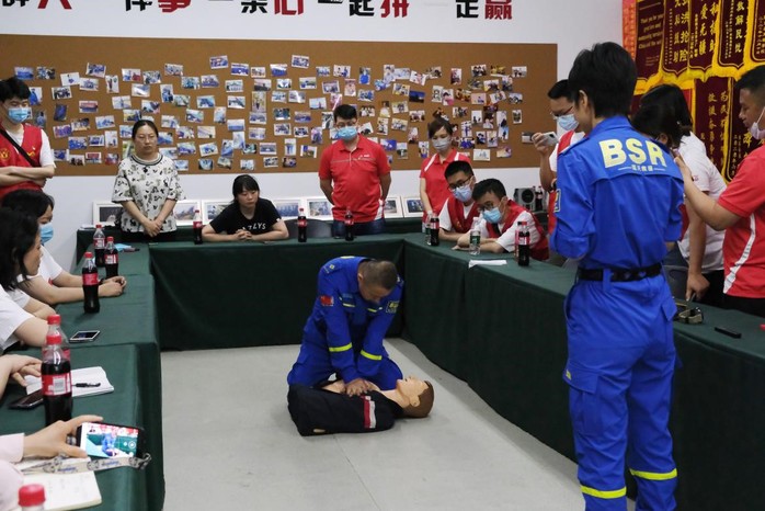 最后,劉曉冬、蘇琴和隊員為參加活動的黨員們帶來了一場生動的急救知識、救援技能分享課程。隊員們在現(xiàn)場實操中演示了海姆立克急救法、心肺復(fù)蘇術(shù)、緊急止血等技能的實施要領(lǐng),大家紛紛表示受益匪淺,課程切實提高了大家的安全意識和自救互救能力。