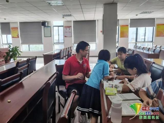 圖為團隊成員輔導(dǎo)孩子暑假作業(yè)。 中國青年網(wǎng)通訊員 黃光輝 攝