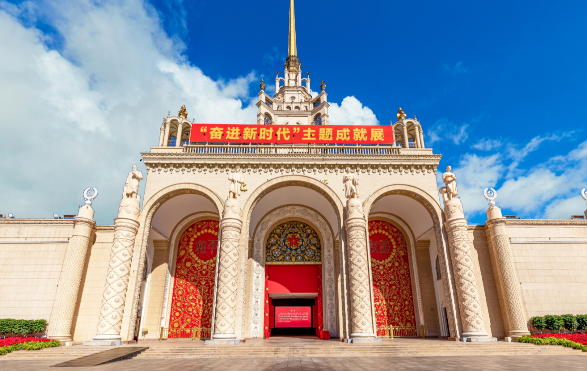 “奮進(jìn)新時代”主題成就展以黨的十八大以來黨中央治國理政為主線,聚焦新時代10年黨和國家事業(yè)的偉大成就、偉大變革。展覽設(shè)序廳、中央綜合展區(qū)、地方展區(qū)、展望展區(qū)、室外展區(qū)和互動展區(qū)6個展區(qū),運(yùn)用圖片、實(shí)物、模型等6000多項(xiàng)展覽要素,角度豐富、內(nèi)涵飽滿。從室外展區(qū)到序廳,從中央綜合展區(qū)到地方展區(qū),一件件模型、一幅幅圖片、一段段視頻,無不彰顯祖國的日益強(qiáng)大。