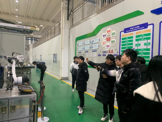 在工業(yè)園區(qū)相關(guān)同志的帶領(lǐng)下,學(xué)生們參觀企業(yè)的環(huán)境和功能分區(qū),了解公司的企業(yè)文化、技術(shù)研發(fā)、一線車(chē)間、黨建工作展示等內(nèi)容。先后參觀郎溪騰旋科技有限公司、宣城市華菱精工科技股份有限公司、幃翔電子科技(安徽)有限公司、宣城托新精密科技有限公司等四家企業(yè)和郎溪“一地六縣”合作區(qū)展示中心。四家企業(yè)是當(dāng)?shù)刂攸c(diǎn)納稅企業(yè)和標(biāo)桿工廠,郎溪“一地六縣”合作區(qū)展示中心描繪郎溪經(jīng)開(kāi)區(qū)盛世長(zhǎng)卷,展示專精特新企業(yè)風(fēng)采,彰顯黨建引領(lǐng)品牌,突出郎溪地域文化特色。