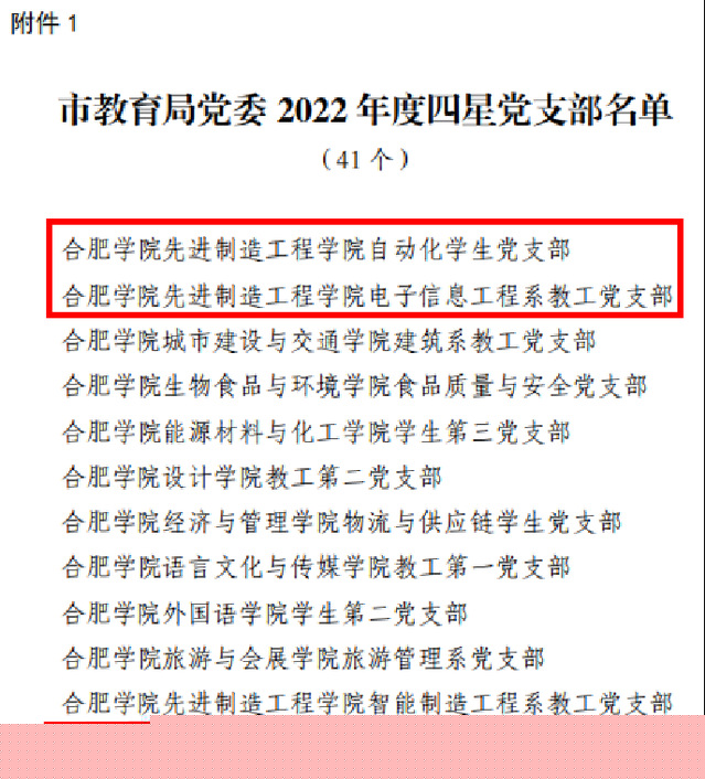 近日,中共合肥市教育局委員會下發(fā)了《關(guān)于公布2022年度四星、五星黨支部驗收審定結(jié)果的通知》(合教黨委〔2023〕12號),先進制造工程學(xué)院3個黨支部被評為五星級黨支部、3個黨支部被評定為四星級黨支部。