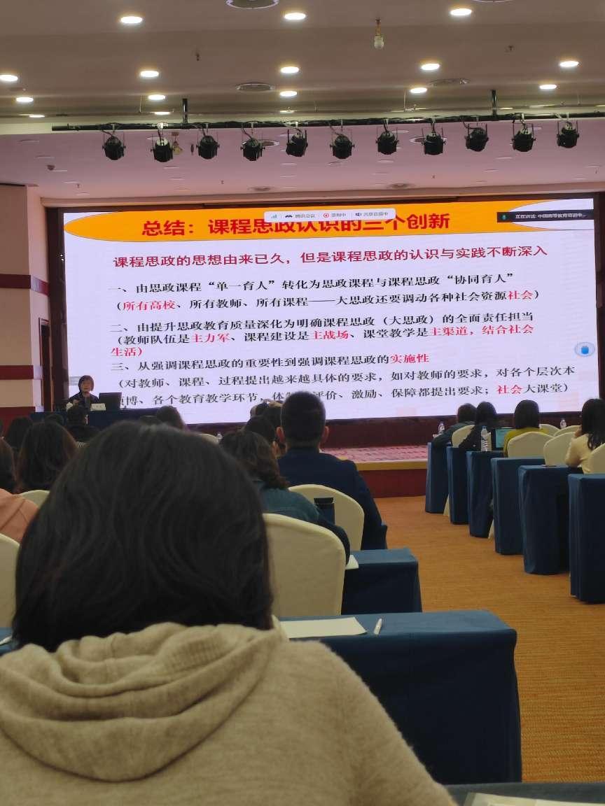 與會(huì)教師通過參加此次會(huì)議認(rèn)識(shí)到,在全面建設(shè)社會(huì)主義現(xiàn)代化國(guó)家新征程的歷史潮流中,構(gòu)建全過程、多渠道的課程思政教育模式是必然且必要之勢(shì)。作為專業(yè)課教師,要運(yùn)用專業(yè)特色,打造“專業(yè)+思政”的課程建設(shè),挖掘?qū)W科本身蘊(yùn)含的思政教學(xué)元素,引領(lǐng)打造愛國(guó)主義教育、文化弘揚(yáng)、科學(xué)素養(yǎng)提升三者有機(jī)結(jié)合的教學(xué)特色,真正達(dá)到以學(xué)科為基礎(chǔ),以育人為目的的教學(xué)循環(huán)。讓有信仰的人講信仰,讓有情懷的人講情懷,課程思政建設(shè),任重道遠(yuǎn)。