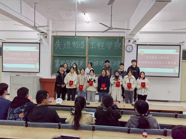 為豐富校園生活,美化生活環(huán)境,加強同學們對于寢室衛(wèi)生的重視。先進制造工程學院學生會于2023326日下午在38棟二階梯舉辦第四屆寢室文化設(shè)計大賽決賽,進行最后的評比工作,獲獎寢室如下:一等獎4217,二等獎5122、4211,三等獎45219、4305、4219、4205,其余參賽寢室均為優(yōu)秀獎。