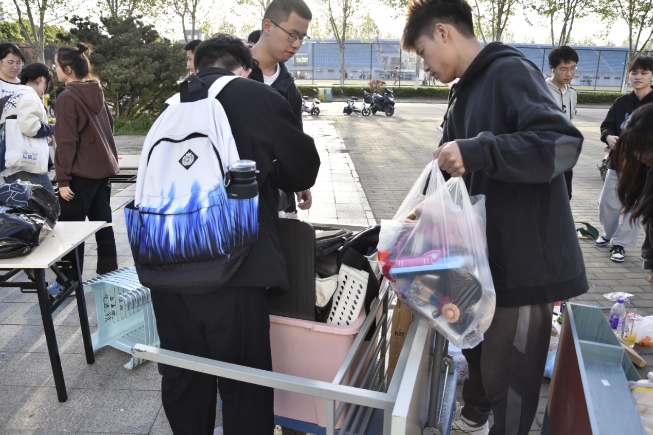 在經(jīng)過先進制造工程學(xué)院團委學(xué)生會學(xué)紀部、權(quán)益部成員數(shù)周的活動籌備。活動當(dāng)天,他們一早就將收集到的學(xué)院同學(xué)閑置物品運送到二期體育館旁活動地點并整齊擺放,等待第一批顧客的到來。日落西山,眼看參與活動的同學(xué)越來越多,擔(dān)任售貨員的同學(xué)依然保持著敬業(yè)的服務(wù)態(tài)度,耐心為每一位顧客答疑解惑,貨架上的貨物也是肉眼可見的減少?;顒右恢背掷m(xù)到下午五點,很多同學(xué)都以實惠的價格買到自己心儀的物品,學(xué)院活動的交易金額在各二級學(xué)院中排名第二。至此,本屆跳蚤市場取得圓滿結(jié)束。