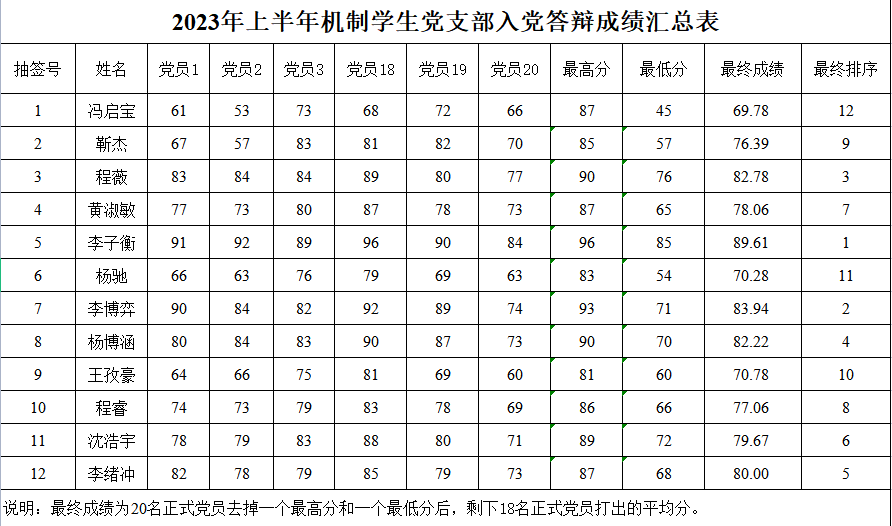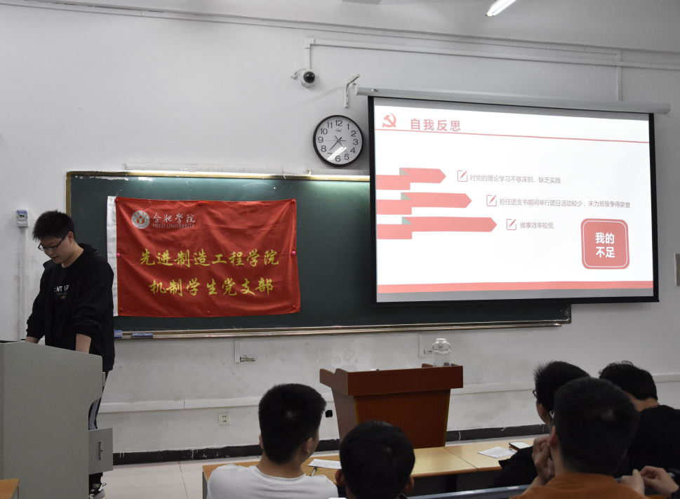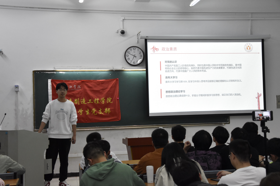 最后,每位正式黨員公正客觀地對(duì)匯報(bào)人的綜合表現(xiàn)進(jìn)行現(xiàn)場(chǎng)評(píng)分,最終20機(jī)制2班李子衡獲得89.61分,21機(jī)制1班李博弈獲得83.94分,21機(jī)制3班程薇獲得82.78分,21機(jī)制2班楊博涵獲得82.22分,21機(jī)制2班李緒沖獲得80分并均被確定為本學(xué)期的發(fā)展對(duì)象。