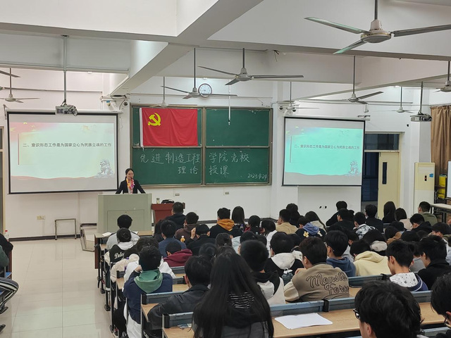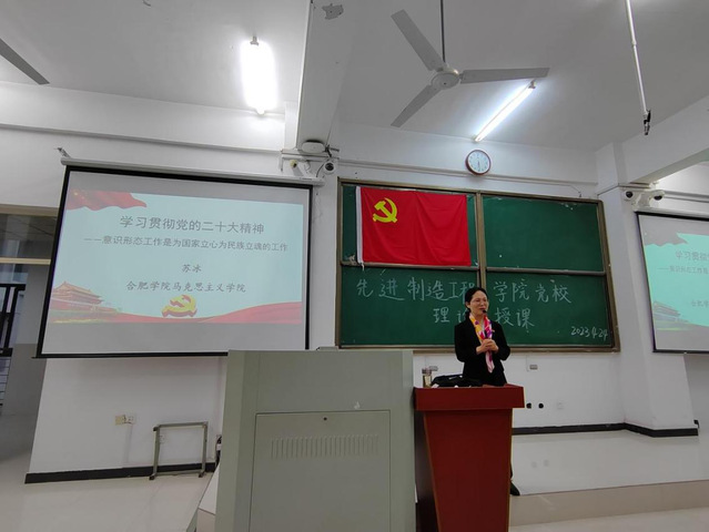 為加強大學生對意識形態(tài)的認識,2023年4月24日18點30分,先進制造工程學院分黨校邀請了合肥學院馬克思主義學院副院長蘇冰教授為第七期入黨積極分子培訓班講授“學習貫徹黨的二十大精神——意識形態(tài)工作是為國家立心為民族立魂的工作”專題黨課。本次黨課由機制學生黨支部書記威力旺老師主持,先進制造工程學院分黨校第七期入黨積極分子班153名學員和學生黨支部23名黨員參加了本次理論授課。