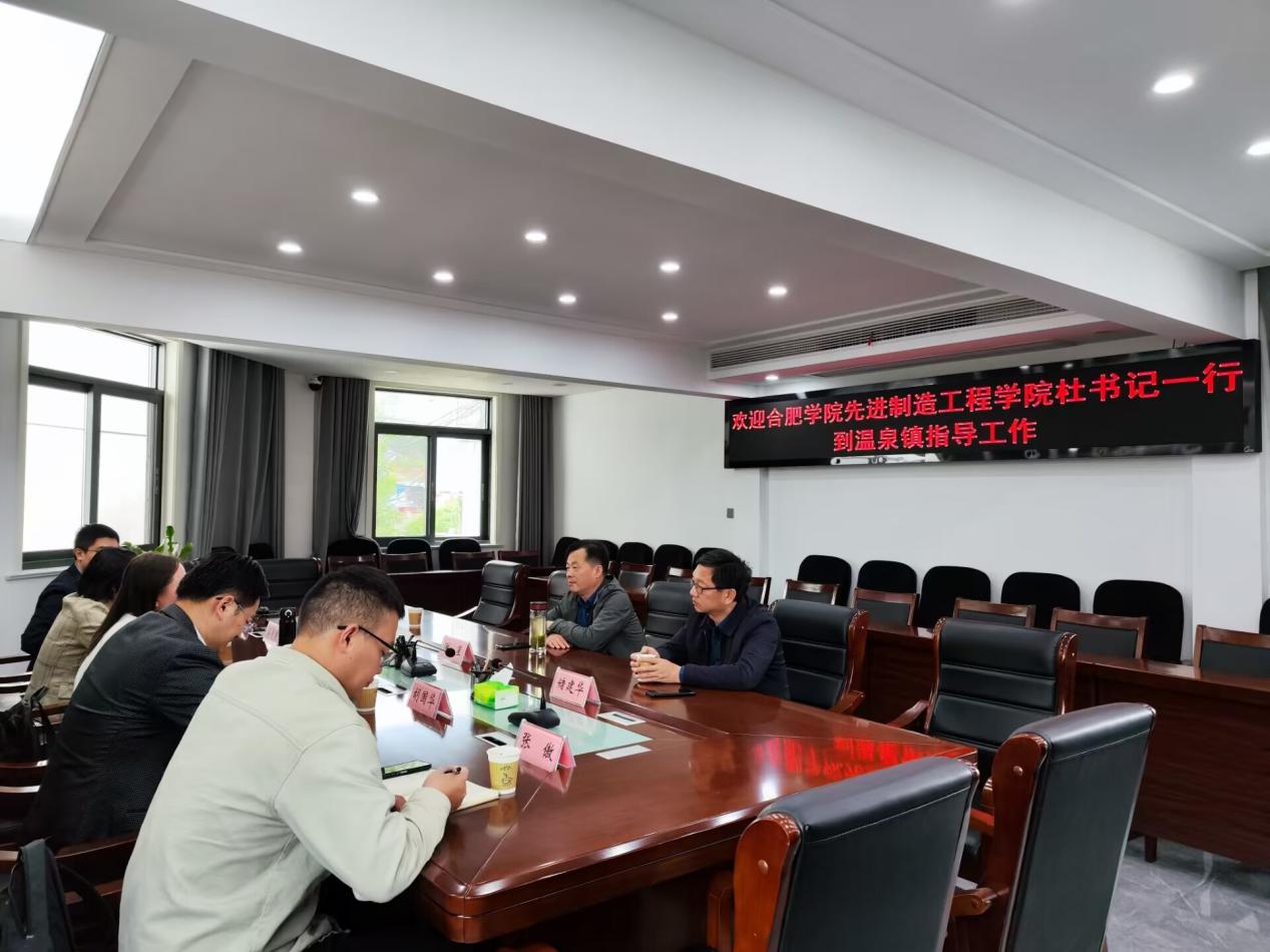 座談會(huì)上,溫泉鎮(zhèn)黨委書(shū)記洪星首先對(duì)先進(jìn)制造工程學(xué)院領(lǐng)導(dǎo)一行的到來(lái)表示歡迎,隨后,通過(guò)溫泉鎮(zhèn)宣傳片簡(jiǎn)要介紹了當(dāng)?shù)氐膮^(qū)位資源、產(chǎn)業(yè)發(fā)展、旅游文化等相關(guān)情況。在談到我院畢業(yè)生徐亞根時(shí),洪書(shū)記給予了高度的贊賞,并向合肥學(xué)院對(duì)優(yōu)秀人才的培養(yǎng)表示感謝。徐亞根向老師們匯報(bào)了個(gè)人工作歷程、工作感悟和今后發(fā)展規(guī)劃,向母校的培養(yǎng)和老師們的關(guān)懷表示感謝。