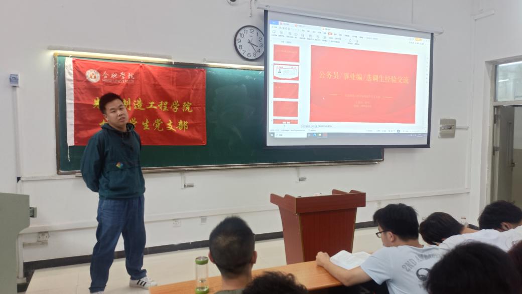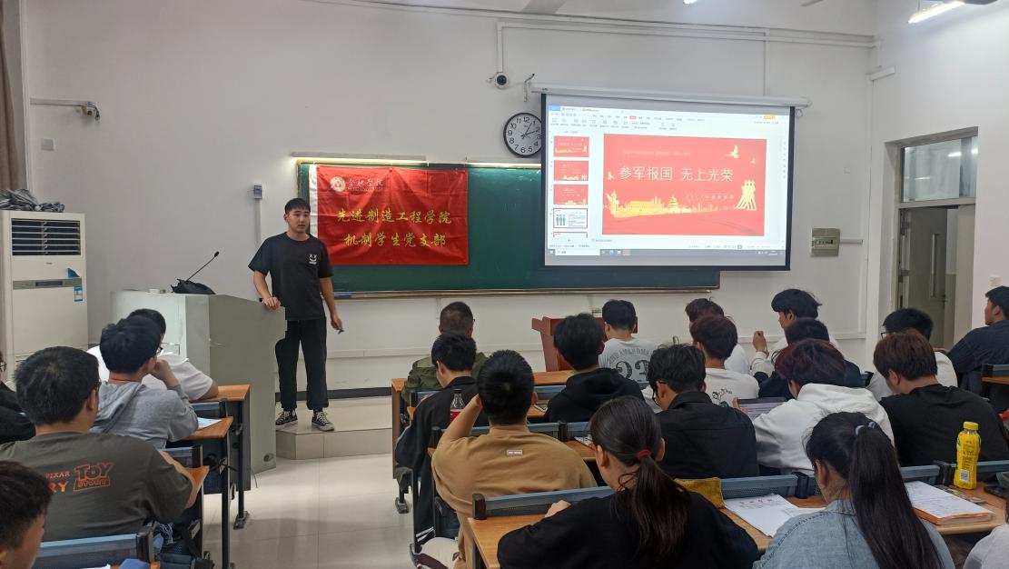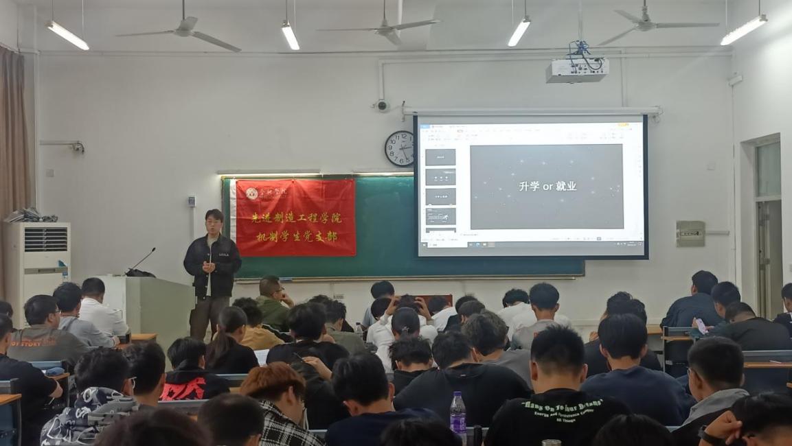 為引導(dǎo)青年學(xué)生立足實(shí)際、找準(zhǔn)定位,樹(shù)立理性、平實(shí)的擇業(yè)觀、就業(yè)觀,主動(dòng)到基層一線吃苦耐勞、踏實(shí)奮斗、成長(zhǎng)成才,2023年5月24日下午14:00,機(jī)制學(xué)生黨支部于36棟103教室開(kāi)展“學(xué)長(zhǎng)來(lái)了——啟航青春就業(yè)引領(lǐng)”主題黨日活動(dòng),活動(dòng)邀請(qǐng)了19級(jí)正式黨員韓智敏、李玉龍、徐海、舒昊為同學(xué)們分享自己的就業(yè)經(jīng)驗(yàn)。2021級(jí)機(jī)制專業(yè)所有學(xué)生參加了本次活動(dòng),本次活動(dòng)由機(jī)制學(xué)生黨支部書記威力旺老師主持。
