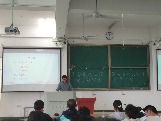 2023年5月23日中午,自動(dòng)化學(xué)生黨支部“2023年上半年預(yù)備黨員發(fā)展大會(huì)”在支部書記梅志強(qiáng)老師的組織下,于我校38棟3階梯教室成功舉行,參加此次會(huì)議的有支部全體學(xué)生黨員以及多名群眾代表。