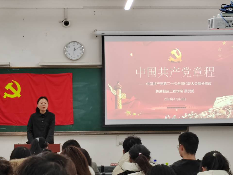 為深入學(xué)習(xí)習(xí)近平新時代中國特色社會主義思想、貫徹落實黨的二十大精神,2023年12月25日中午,我院黨委副書記、紀委書記蔡靈美老師在35棟101教室為自動化學(xué)生黨支部和學(xué)院2023年新發(fā)展黨員開展了以“黨的二十大《中國共產(chǎn)黨章程》修改”為主題的黨課教育培訓(xùn)。