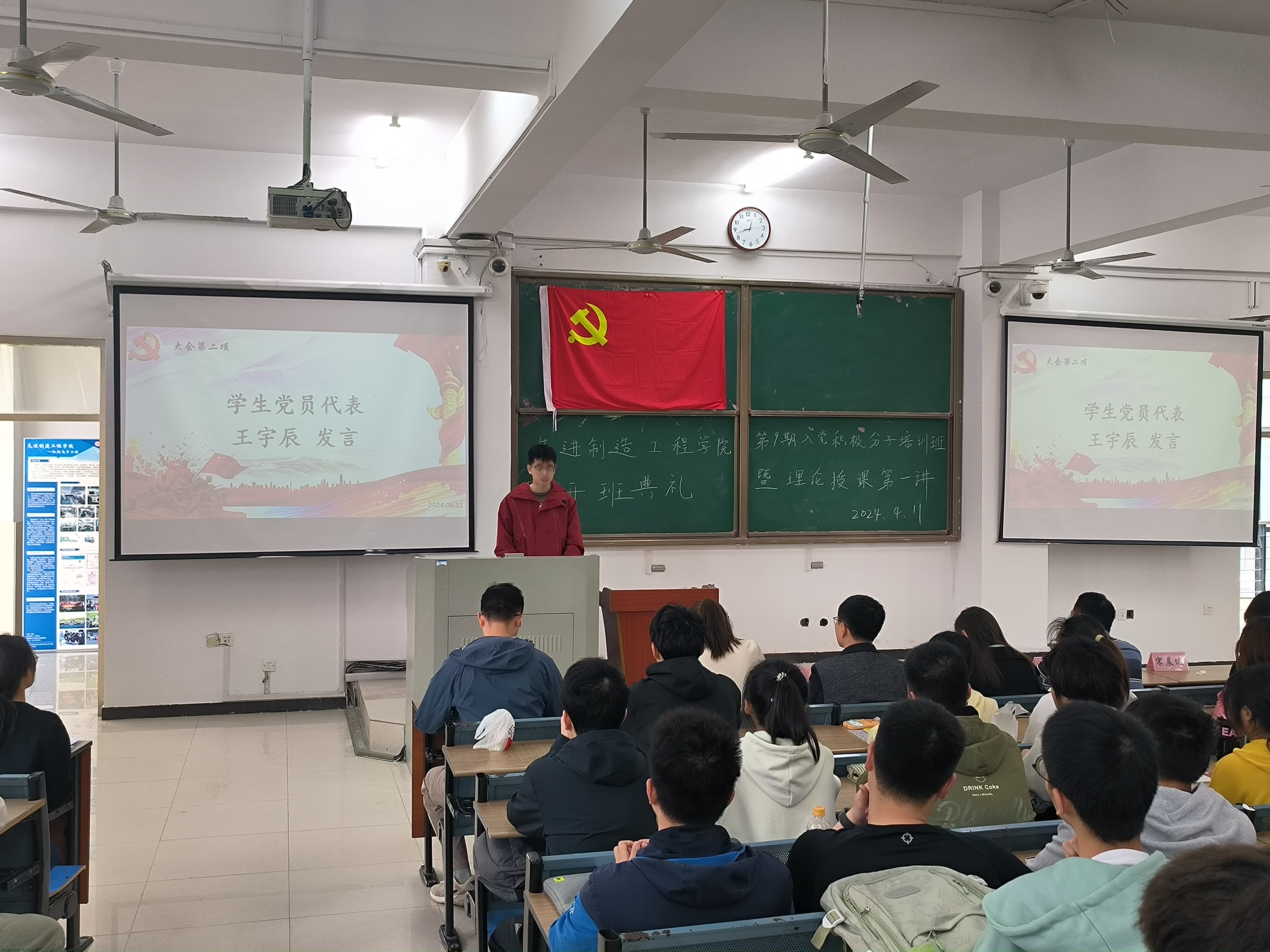 2024年4月11日中午,先進制造工程學院分黨校第九期入黨積極分子培訓班開班典禮在38棟3JT教室舉行。院黨委書記杜娟、學工辦主任劉罡、各學生黨支部書記和109名黨校成員參加開班典禮,典禮由機制學生黨支部書記威力旺老師主持。