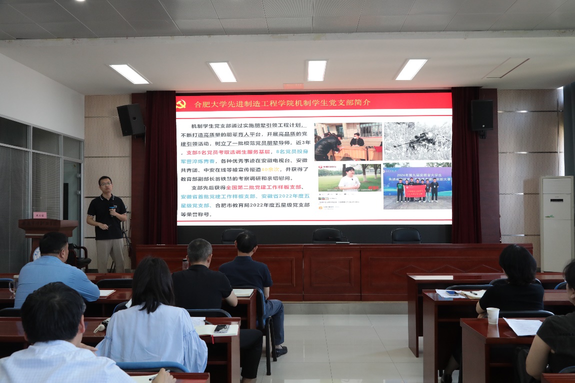 交流會上,威力旺老師首先介紹了合肥大學(xué)先進(jìn)制造工程學(xué)院黨委抓黨建促發(fā)展、不斷推進(jìn)基層黨組織建設(shè)工作取得的成效。目前學(xué)院黨委獲評第四批“全國黨建工作標(biāo)桿院系”、“安徽省首批黨建標(biāo)桿院系”,3個(gè)黨支部入選“全國黨建工作樣板支部”培育創(chuàng)建單位,1個(gè)支部獲批全國雙帶頭人教師黨支部書記工作室”,2個(gè)黨支部獲批“安徽省雙帶頭人教師黨支部書記工作室”,3個(gè)黨支部獲批安徽省黨建工作樣板支部,2個(gè)支部獲批安徽省五星級黨支部,6個(gè)黨支部獲批合肥市五星級黨支部