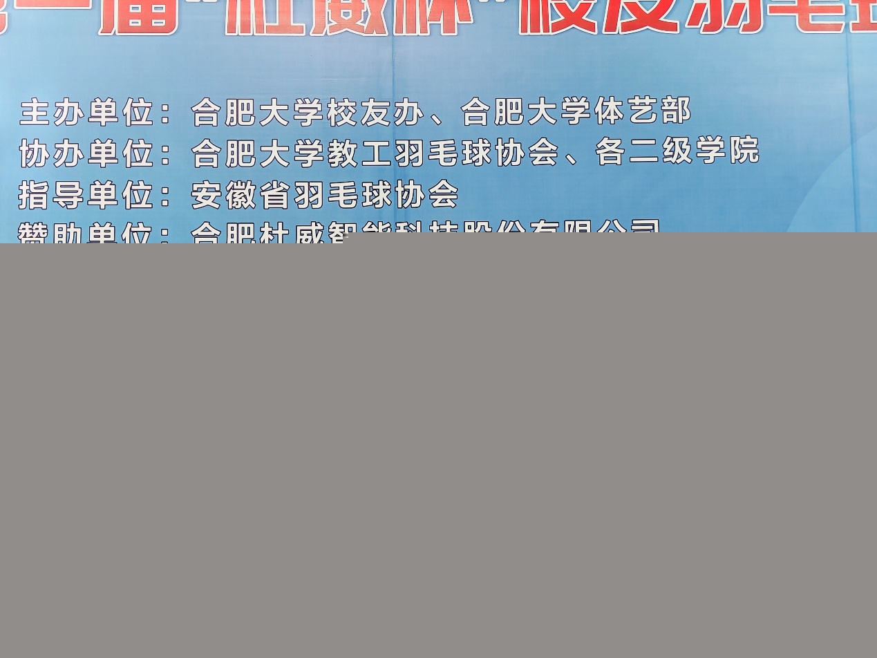 5月18日上午,合肥大學第一屆“杜威杯”校友羽毛球邀請賽于二期體育館順利舉行。本次比賽由合肥大學校友辦、合肥大學體藝部主辦,合肥大學教工羽毛球協(xié)會及各二級學院承辦,共計16支隊伍參賽。此次比賽先進制造工程學院高度重視,精心組織,全程做好服務(wù)工作,確保比賽順利進行。