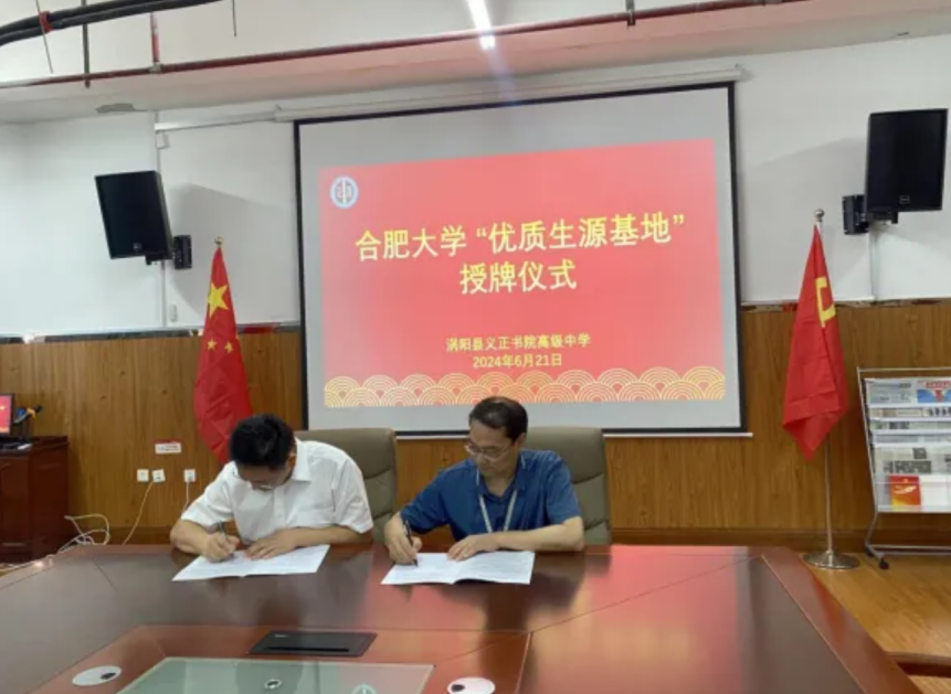 為進一步促進渦陽縣中學與我校的合作交流,使生源基地學生對我校招生政策及人才培養(yǎng)特色有進一步了解,激勵更多優(yōu)秀學子報考合肥大學,6月20日-21日,先進制造工程學院副院長胡國華、電子信息系主任張勝、機械系主任吳其林一行前往渦陽縣開展招生宣傳、優(yōu)質(zhì)生源基地簽約和走訪工作。此次行程共走訪了渦陽縣第一中學、渦陽縣育萃高級中學、渦陽縣義正書院高級中學三所學校,并在渦陽縣義正書院高級中學舉行了合肥大學“優(yōu)質(zhì)生源基地”簽約和授牌儀式。