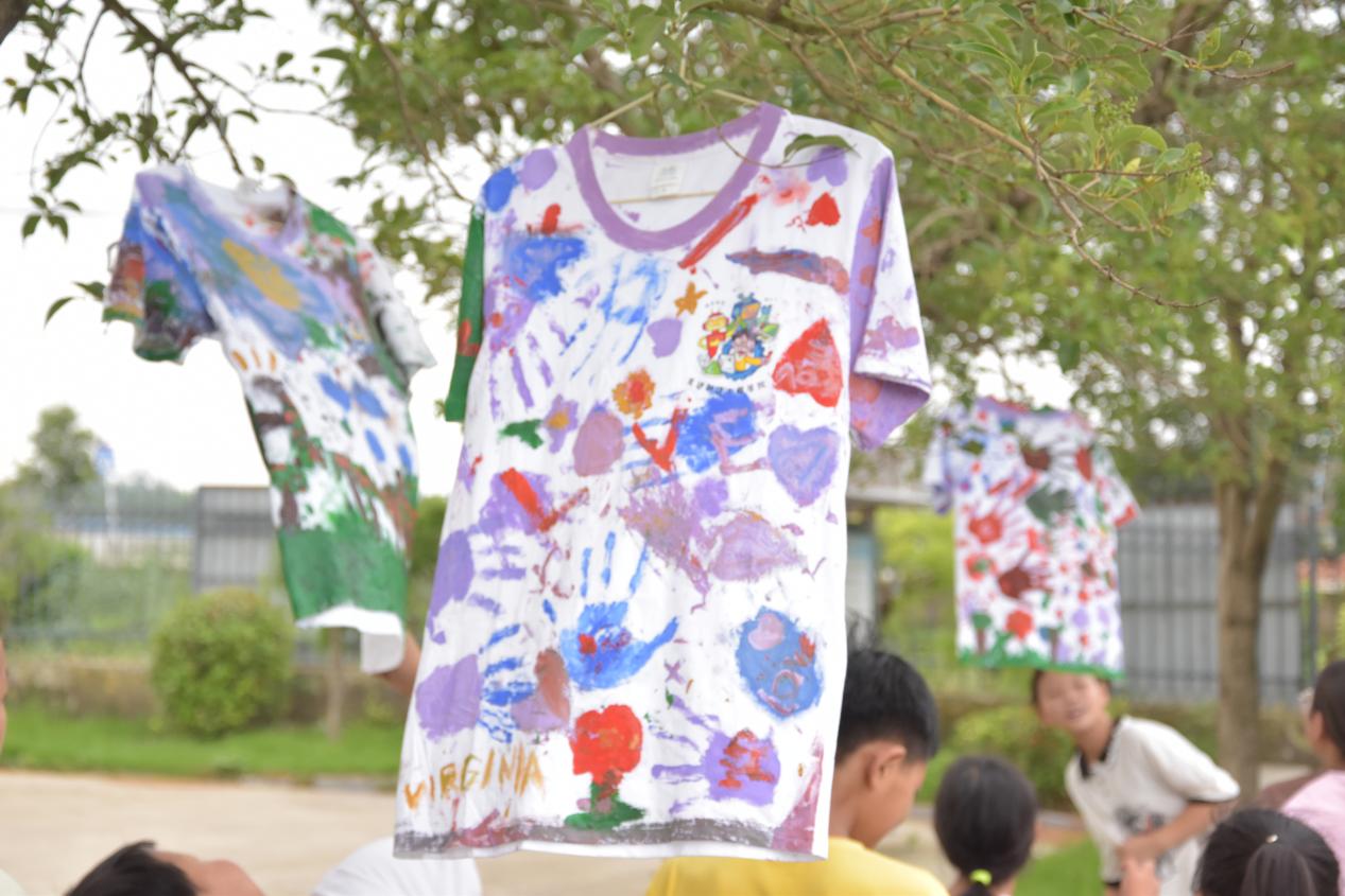 上午八時三十分,調(diào)研團(tuán)隊成員準(zhǔn)時開展校園支教。為使孩子們更好地理解與記憶知識,調(diào)研成員設(shè)計積分獎勵制來調(diào)動孩子的自主學(xué)習(xí)性。此外利用課間時間,帶領(lǐng)孩子們在衣服上涂鴉,合影記錄這段特殊時光。