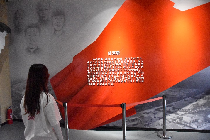 最后,展館在一幅熱烈慶祝新中國成立的油畫中結(jié)尾,畫面中,有五星紅旗在藍(lán)天下迎風(fēng)飄揚,人們歡歌笑語,臉上洋溢著幸福的笑容,慶祝著這個歷史性的時刻。回頭看那段烽火連天的歷史。團隊成員深知,是無數(shù)革命先烈用鮮血和生命換來了今天的和平與安寧。那段歷史雖然充滿了艱辛與苦難,但它也鑄就了不屈不撓、勇于斗爭的精神。這種精神將永遠(yuǎn)激勵著每一位青年學(xué)子前行,在新時代的征程中繼續(xù)發(fā)揚光大。離開紀(jì)念館時,團隊成員們的心情既沉重又振奮。深知自己作為一名青年學(xué)子所肩負(fù)的責(zé)任和使命,在未來的日子里,團隊成員也將把這段歷史銘記于心,將其轉(zhuǎn)化為前行的動力,不斷追求進步和發(fā)展。