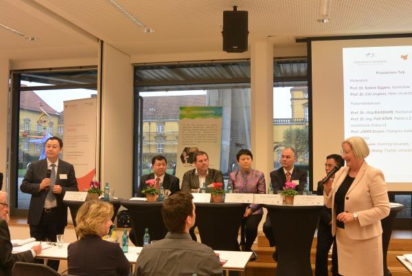 校長(zhǎng)對(duì)話環(huán)節(jié)由奧斯納布呂克應(yīng)用科學(xué)大學(xué)副校長(zhǎng)薩賓娜·艾格斯教授和合肥學(xué)院黨委書記蔡敬民教授共同主持。施特拉爾松德應(yīng)用科技大學(xué)前校長(zhǎng)法爾克·霍恩教授,安哈爾特應(yīng)用科學(xué)大學(xué)校長(zhǎng)約爾克·巴格丹教授,常熟理工學(xué)院校長(zhǎng)江作軍教授,昆明學(xué)院校長(zhǎng)黎素梅教授,佛山科學(xué)技術(shù)學(xué)院黨委書記曾崢教授參加了對(duì)話。參加對(duì)話的校長(zhǎng)們首先對(duì)各自高校進(jìn)行了簡(jiǎn)單介紹,然后就創(chuàng)新創(chuàng)業(yè)教育和高校對(duì)創(chuàng)業(yè)支持展開了熱烈的討論和經(jīng)驗(yàn)交流。