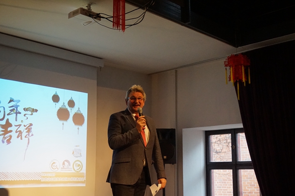元月六日,波羅的海華人春節(jié)聯(lián)歡會在德國北邊梅克倫堡-前波美拉尼亞州施特拉爾松德市隆重舉行。這是該地區(qū)首次由施特拉爾松德孔子學(xué)院,施特拉爾松德華人學(xué)生學(xué)者聯(lián)合會、格賴夫斯瓦爾德華人學(xué)生學(xué)者聯(lián)合會聯(lián)合舉辦,中國駐德使館教育處公參劉立新博士、施特拉爾松德市市議會主席彼得·保羅先生、施特拉爾松德應(yīng)用科學(xué)大學(xué)校長佩特拉·邁爾教授及施特拉爾松德孔子學(xué)院理事長、德方院長法爾克·霍恩教授分別致辭。施特拉爾松德市市長亞歷山大·巴德洛夫博士請彼得·保羅先生轉(zhuǎn)達(dá)了對中國新春佳節(jié)的祝福和問候。