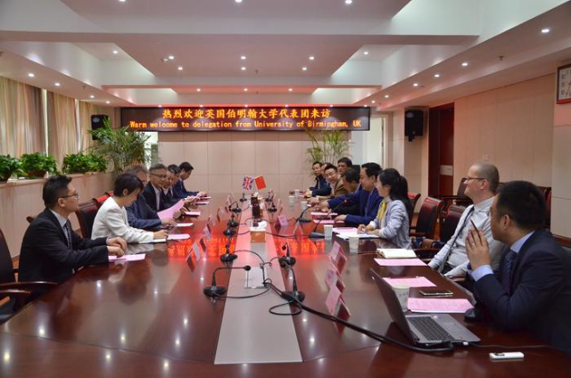 On April 16th, Prof. Cai Jingmin, Chair of HFU Council, meets the delegation from the University of Birmingham, led by its vice president professor Jonathan Frampton, as well as Director of China School.