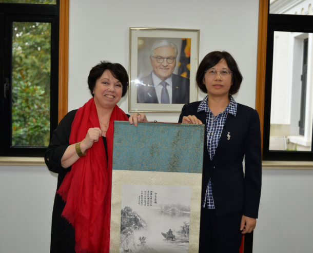 On October 21st, Dr. Wu Chunmei, HFU President, visits Dr. Christine D. Althauser, Consul General of German Consulate in Shanghai.