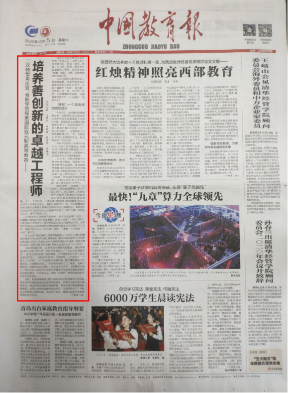 On December 5th, HFUs internationalized higher education dual system hits the headlines of China Education Daily.
